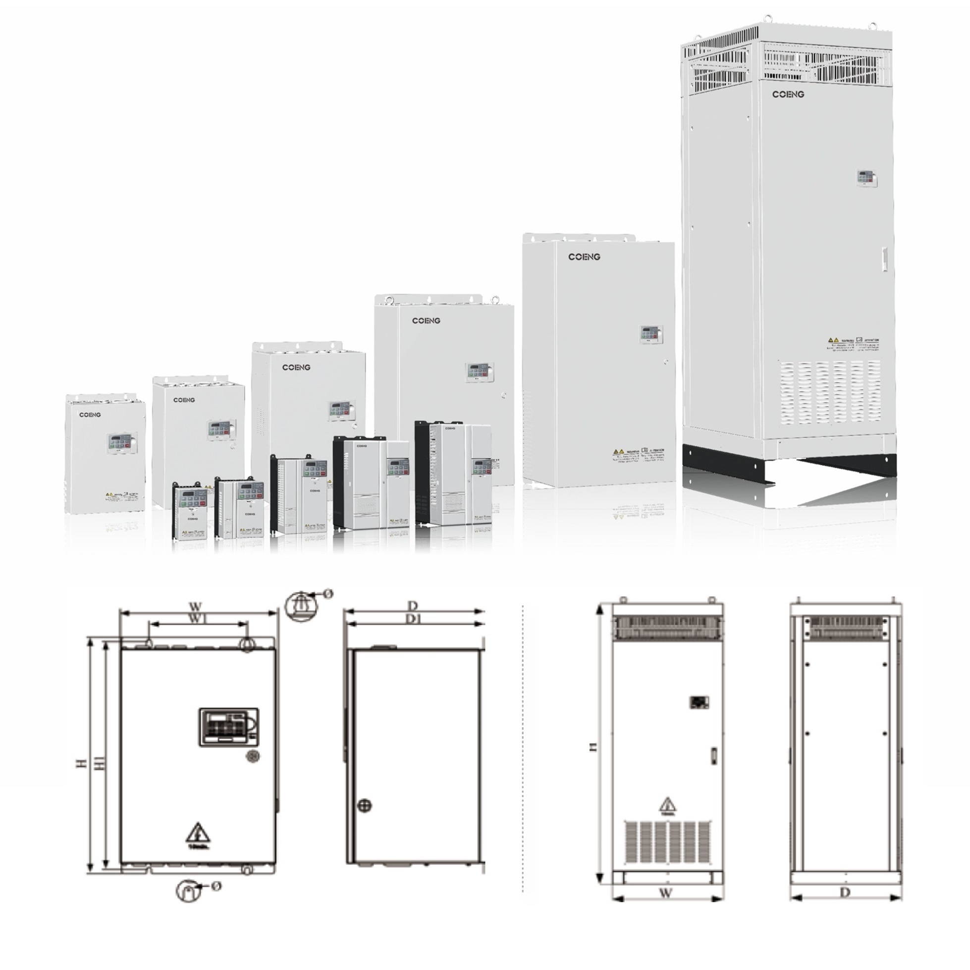 - Key Advantages: Versatile voltage range for seamless adaptation to demanding grid conditions; Smooth speed control with low starting current, ensuring minimal impact on the grid; Equipped with built-in EMC filter and standard-configured DC reactor, reducing radiation.