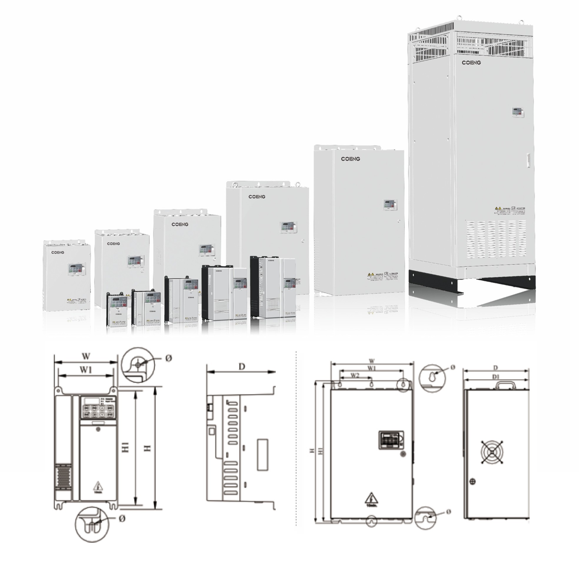The HV300 Series inverter is a cutting-edge, multi-function universal vector frequency inverter, also known as a variable frequency drive (VFD) or AC drive. This recently developed inverter incorporates advanced open-loop and closed-loop vector control technology, allowing precise control of asynchronous motors.